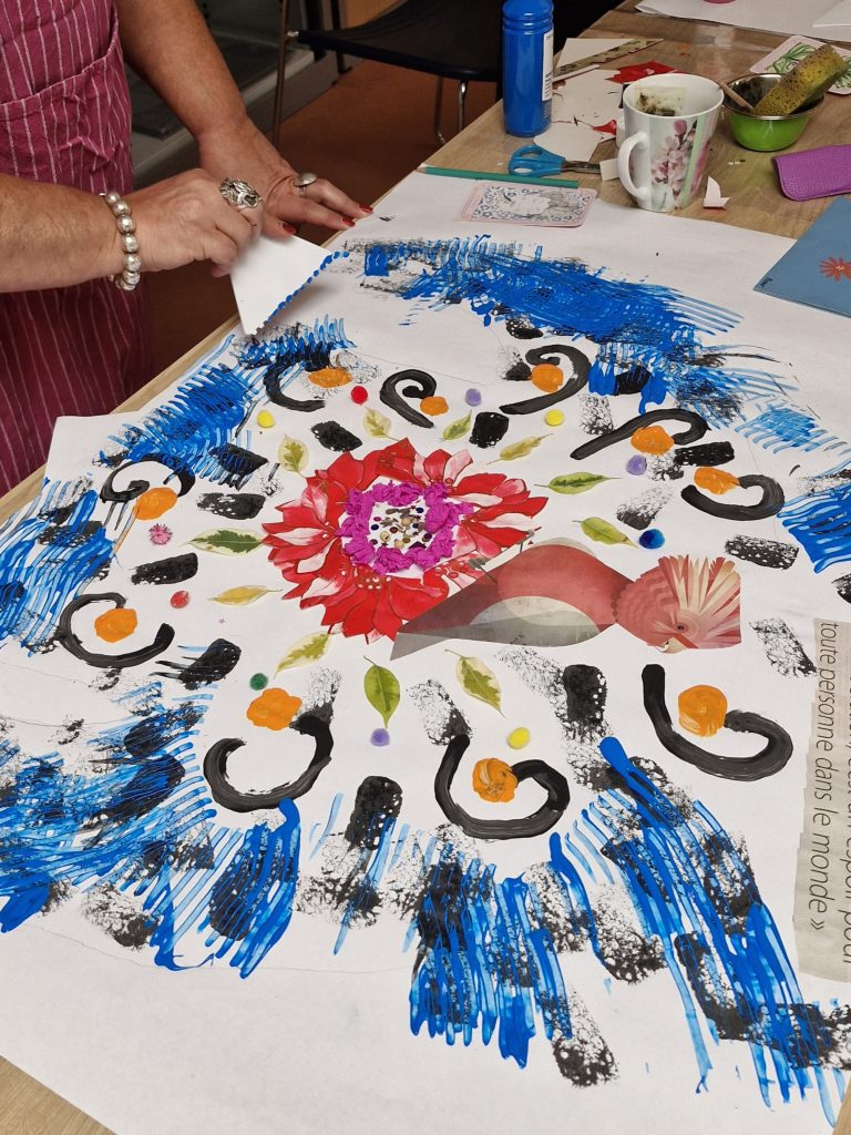 L’expression par la matière (peinture, collage, modelage, etc) devient un chemin vers la détente et l’apaisement